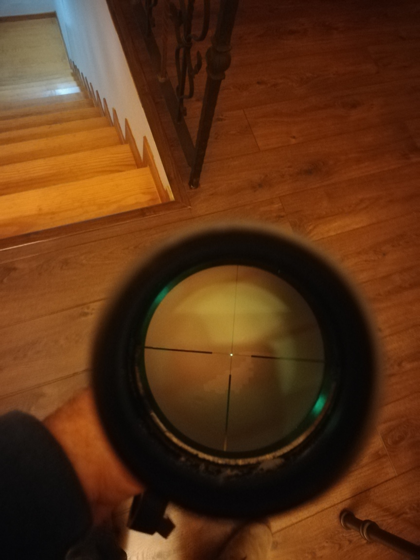Hola a todos, aporto algunos detalles mas del rifle, el lomo regulable te da la altura perfecta para disparar con visor , tanto en tiro de precisión, como tiro a la carrera, es mas voy a hacérselo a la culata de otros dos rifles que tengo con visor. El rifle está centrado a 200 metros con un visor Nikko Stirling DIAMOND 3-12 x 42 con retícula iluminada (No es el de la foto del rifle, sino la foto que adjunto abajo) y monta anillas warne originales desmontables, por si a alguno le puede interesar el conjunto. La precisión del rifle es menos de 1 MOA. En la foto de abajo los dos disparos son a 300 m., estando centrado el rifle a 200 m.