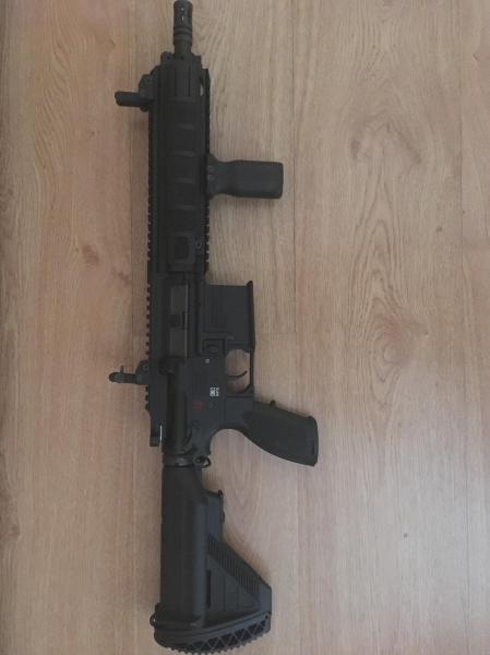 HK416 Comando , con grip delantero Magpul , cubrerailes hk delanteros 2 unidades ,funda cordura negra Marca NISU ,anilla trasera para tubo Magpul para correa , 6 cargadores HK Walter 1000e puesto en casa.
