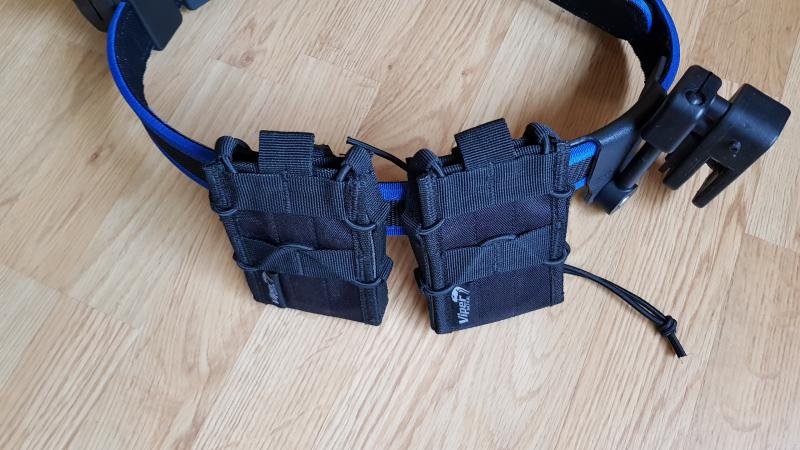 El cinturón con los dos portas. Una de las fundas (son casi idénticas) y vista del m16 con los cargadores largos.