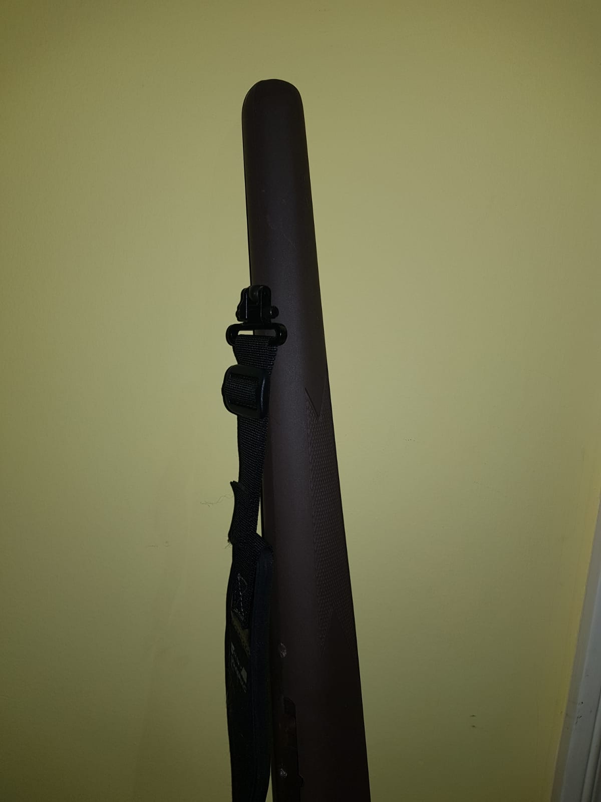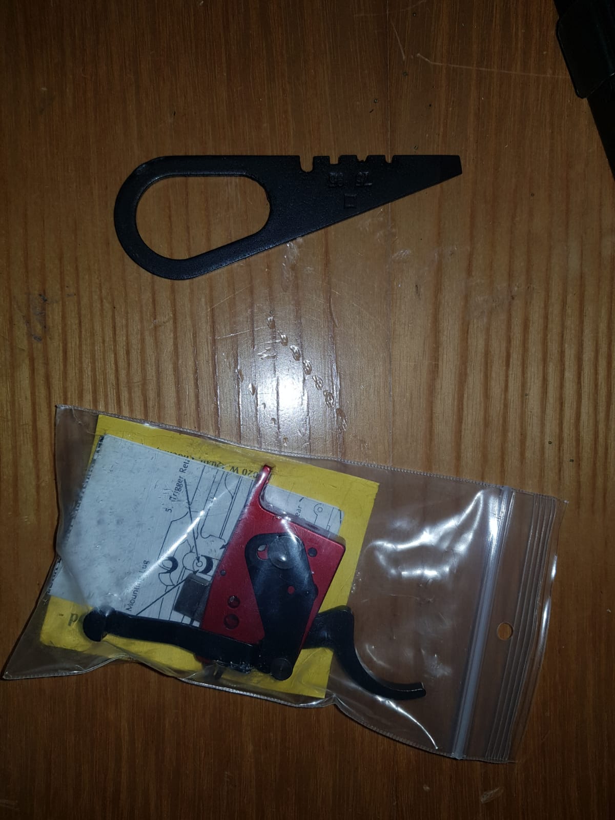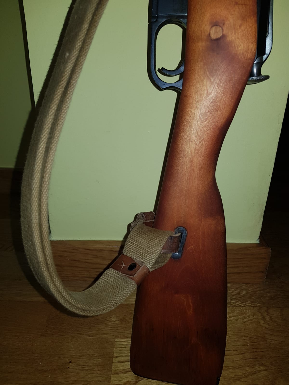 Lleva un disparador Timney que esta ajustado para la culata sintética, el cerrojo con la maneta curva original (los que entendáis un poco, sabréis que es muy difícil de encontrar),ademas de la maneta recta original, la correa original en la culata de madera y otra correa para la culata sintética.