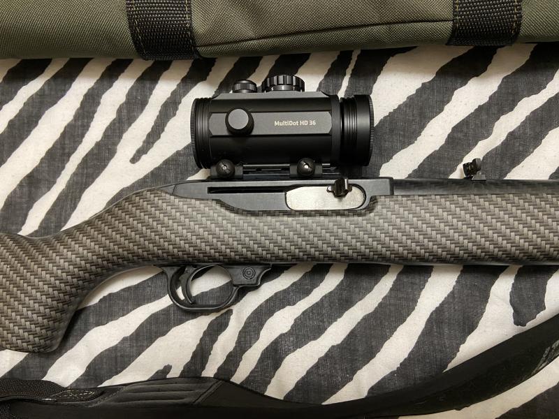 Vendo Ruger customizado y con 15 disparos REALES. Lo compré en mayo de 2018 a una persona que no lo había sacado al monte más que un día y lo preparé a mi gusto para estrenarlo la temporada pasada, pero por temas de trabajo me fue imposible y este año ha sido igual; está equipado con hidroimpresión en efecto carbono gris para la culata y efecto carbono negro para cañón, monturas y cajón de mecanismos, punto rojo Delta Multi Dot HD 36 montado sobre carril Weaver, correa elástica Solognac y funda Yesport a medida con interior de borreguillo. Todo a estrenar, ni un roce. Si se recoge en mano en Logroño adjunto un regalo valorado en 50€.