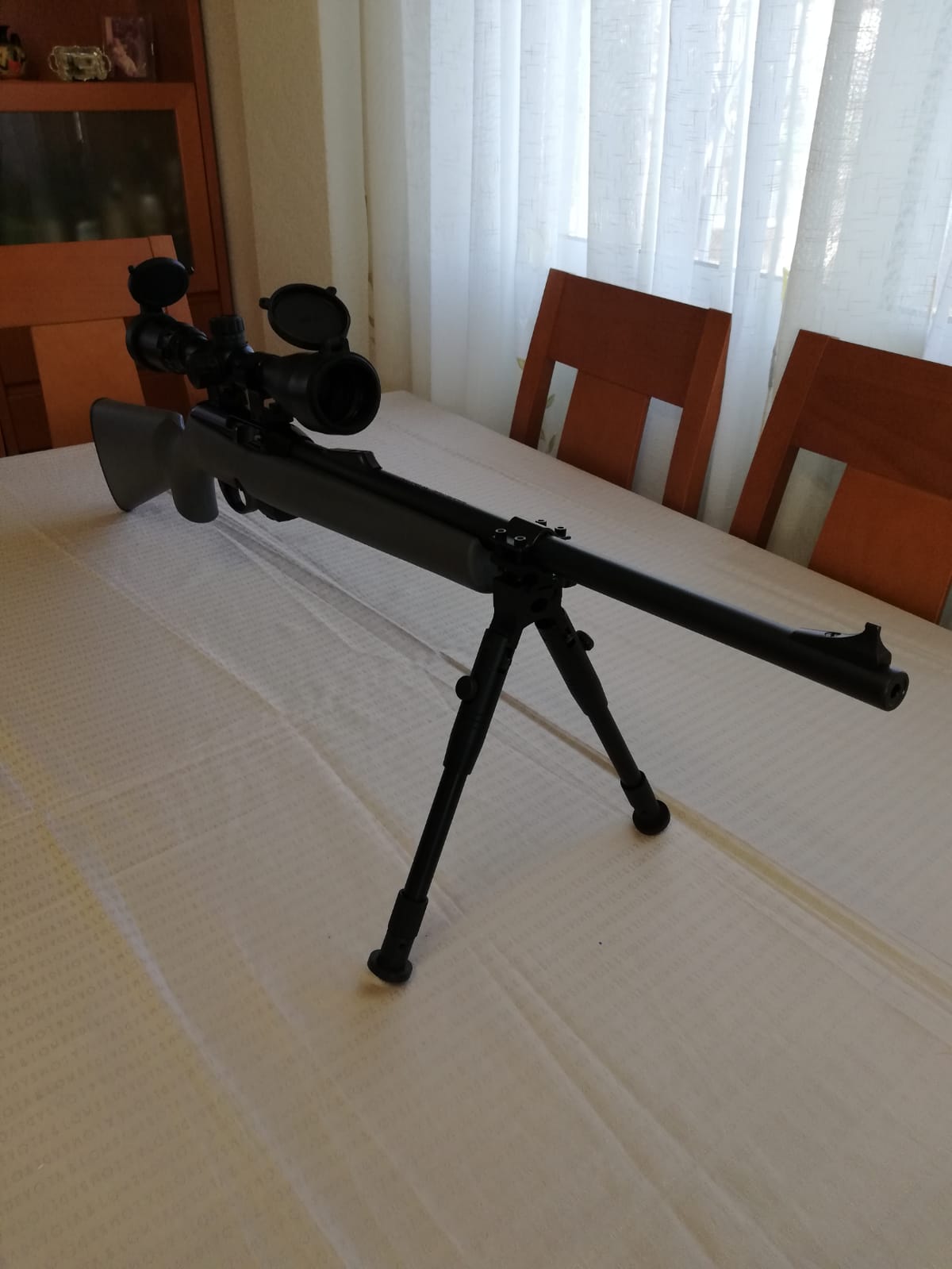Viene con un visor de Leapers 3-9x40 y un bipode y una funda.