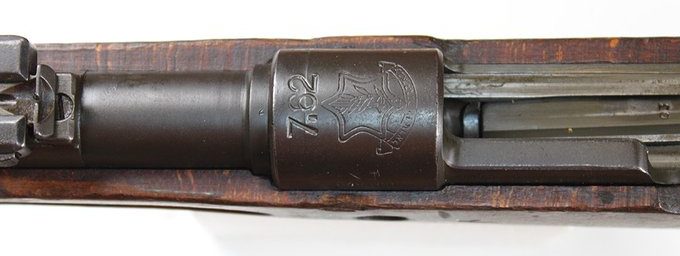 Estos fusiles K98, fueron posteriormente recamarados al 7,62x51, por FN y, a los cuños anteriores, se les añadió los del nuevo calibre y los punzones de su prueba.