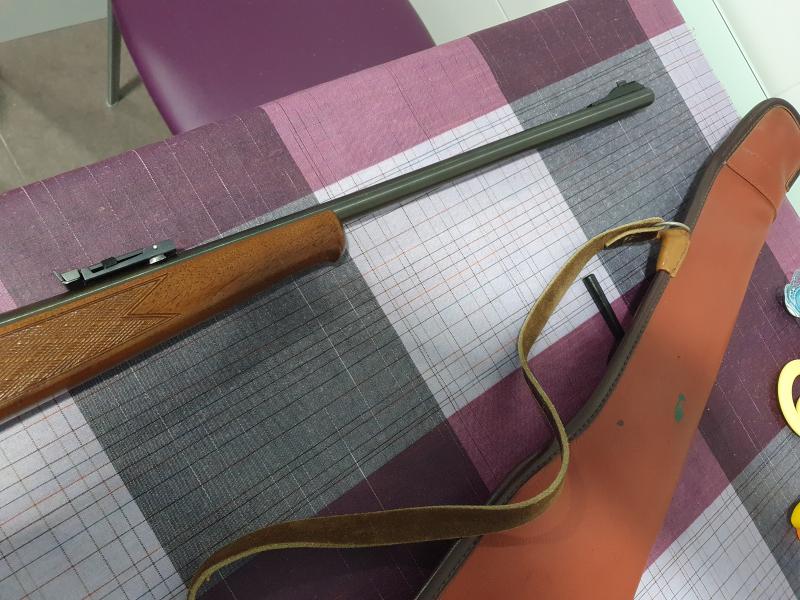 Alza regulable, gatillo con suplemento, cerrojo con bola de goma.