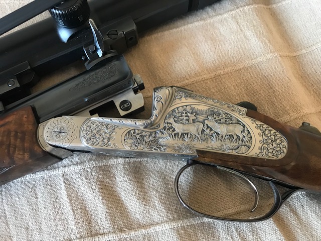 Rifle HEYM monotiro, calibre 6,5x65R. Una auténtica joya. Como nuevo, ni un arañazo. Grabados artesanales de verdad. Madera y veteado preciosos. Carrillera bávara. Ajuste perfecto. Máxima fiabilidad y precisión. Incluye: visor Swarovski Z6 de 2,5 - 15 x 44P, con torreta balística. Estuche y tres cajas de balas RWS, punta KS. 10.500 eur.