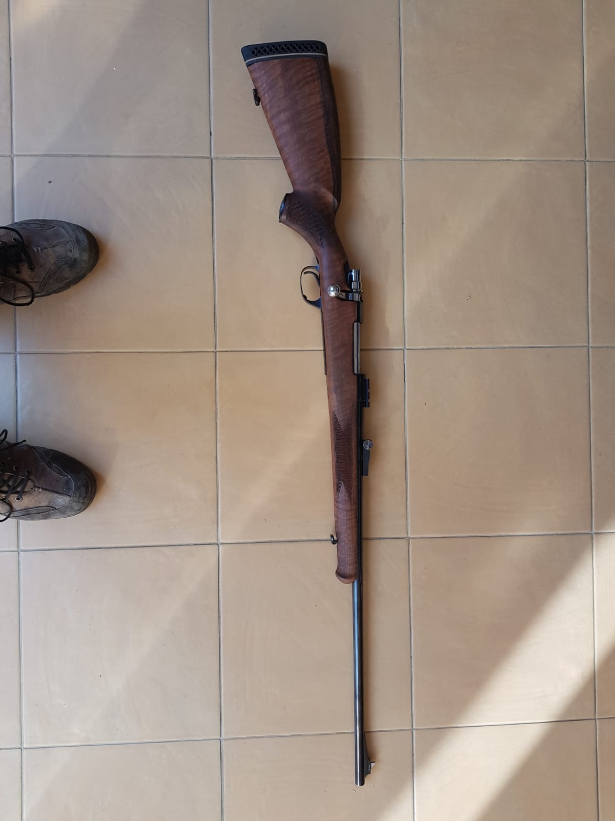 Muy bonito de maderas y culata, sólo un inciso, sin acritud, bases Apel no le veo, sólo una de las dos bases Warne Weaver que debería llevar.