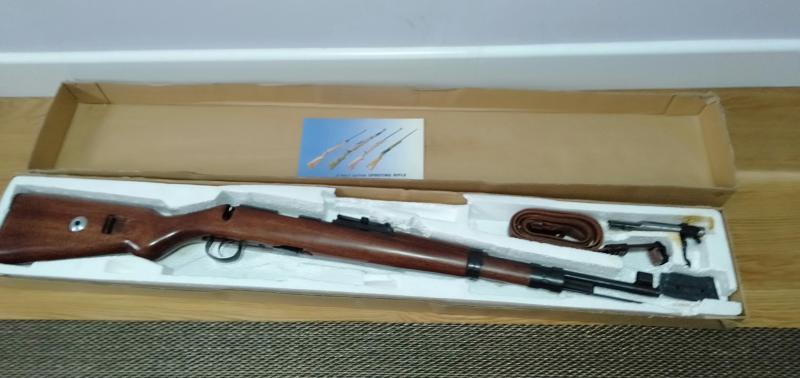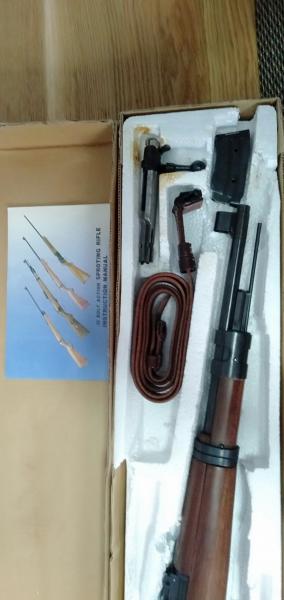 Estado impecable en su caja original, igual que nueva, no tiene marcas ni arañazos, tiene alrededor de 200 tiros solo. Nueva vale alrededor de 300 euros pero yo por 250 incluyo manual original, correa portafusil, un cargador extra de 10 cartuchos. No incluye ni el visor ni la bayoneta que se ven en las fotos.