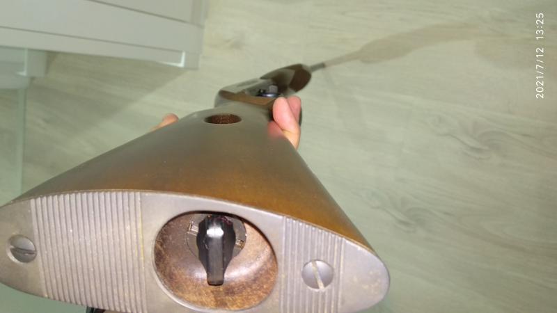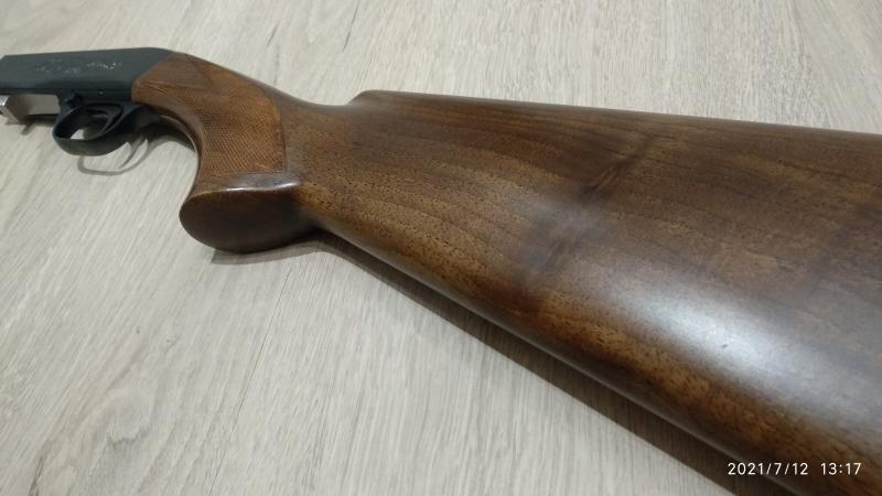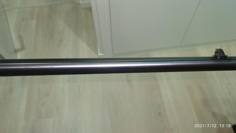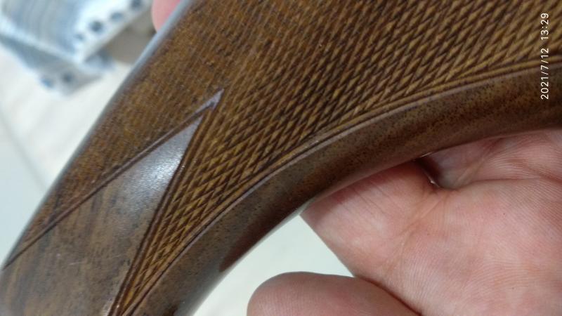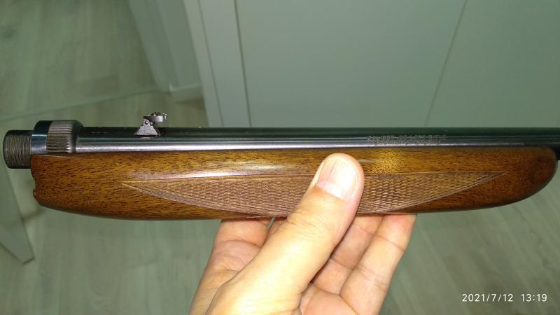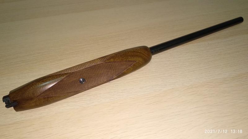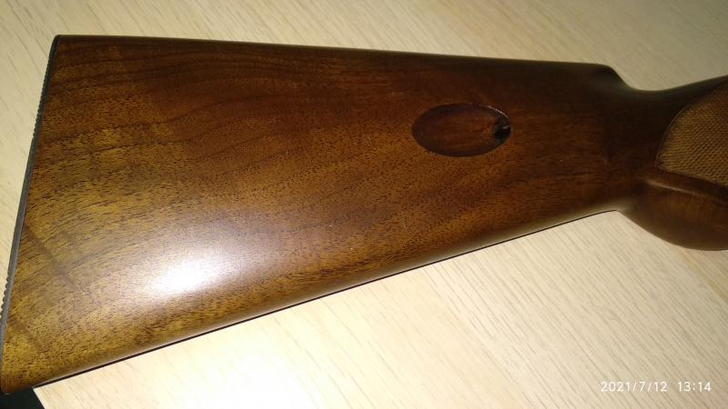La compré en el año 83 ó 84. Hice con ella unos 200 disparos en ese mismo año, y después.... nunca más se ha vuelto a disparar. Fué un capricho junto a otros amigos. La he sacado cada año de la funda para contemplarla, y pasarle un trapo. Está como el primer día o quizá mejor; parece que la madera y el metal han ganado con el tiempo, como los buenos caldos. Se puede comtemplar en las fotos, no tiene ni marcas de las manos en el picado de la madera.