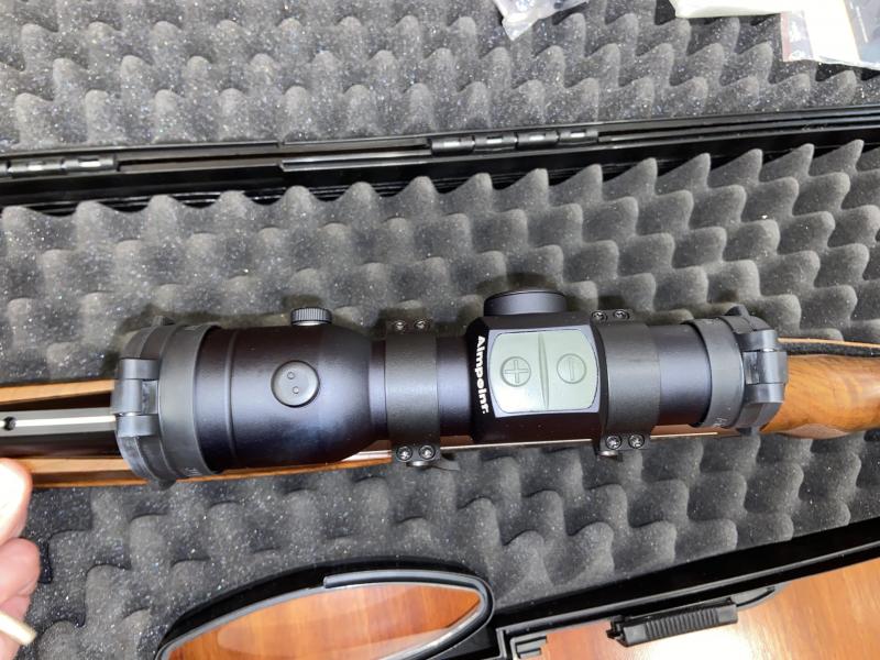 Vendo conjunto de absoluto reestreno; Browning Bar MK3 Eclipse Fluted calibre 30-06 con punto rojo Aimpoint H34S, monturas y carril desmontables originales Warne, correa antideslizante Venator en piel y maletín original. Incluye 2 cantoneras extra y un candado de seguridad. El rifle tiene gastada una caja de balas -11 para calibrarlo y 11 en un par de batidas a las que fue llevado enfundado hasta el puesto-, de ahí su estado sin el más mínimo golpe. Utilizado siempre con RWS Evo nickel 184 grains, nunca con municion recargada. Guiado el 31/12/2018 como regalo de navidad. Lo vendo porque tengo un Blaser que uso más y especialmente esta temporada se va a quedar en casa cogiendo polvo, ya que no tengo tiempo para ir de caza. No me interesan cambios.