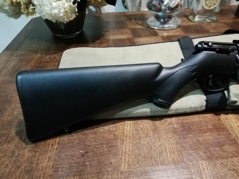 Vendo casi sin uso esta carabina, lleva cañón grueso de 21", diopter y túnel para tirar con miras cerradas, aunque yo las quité para ponerle unas bases de visor que es como la he usado las pocas veces que he tirado con ella. Se acompaña con un cargador de 5 y otro de 10.