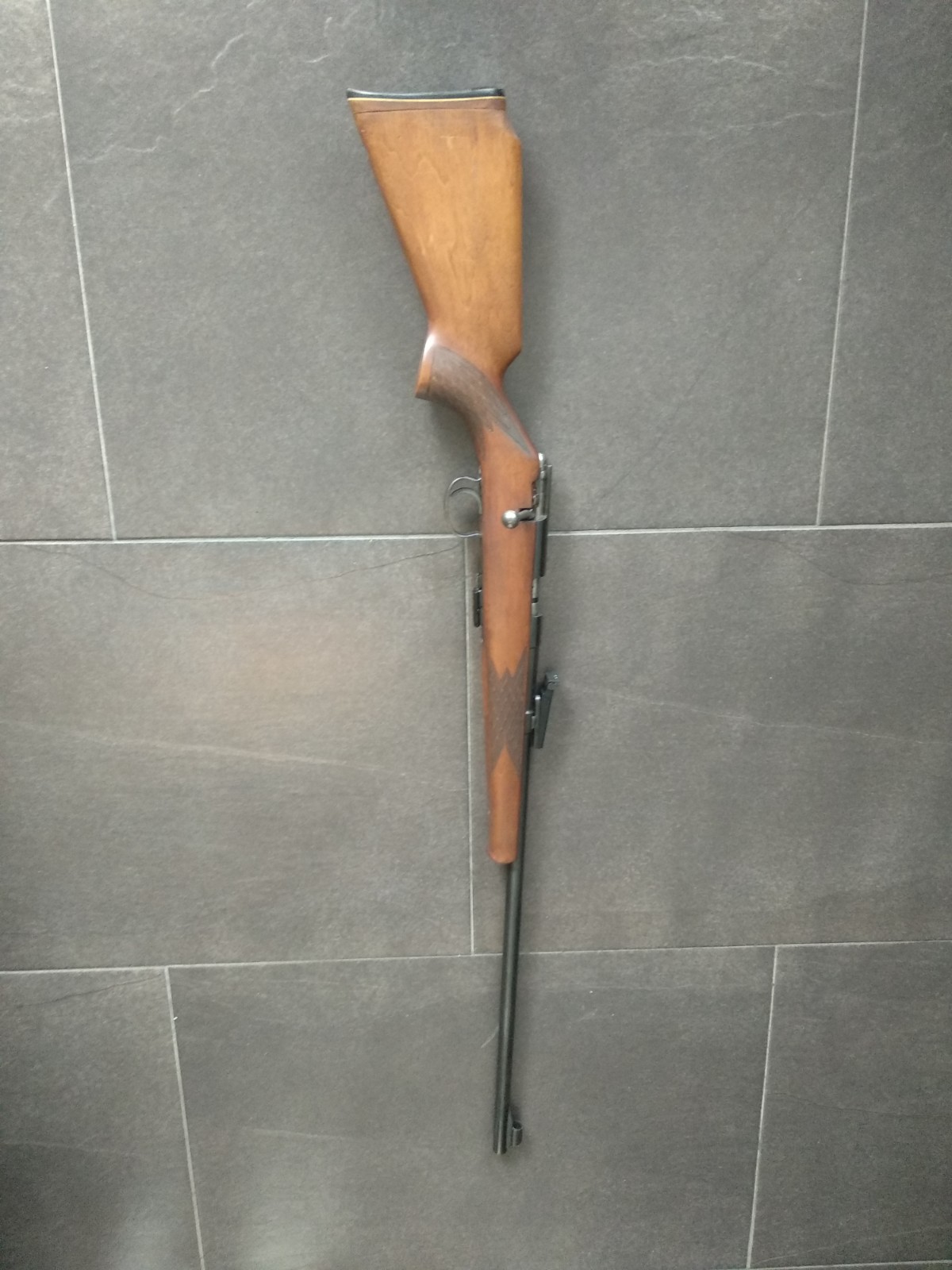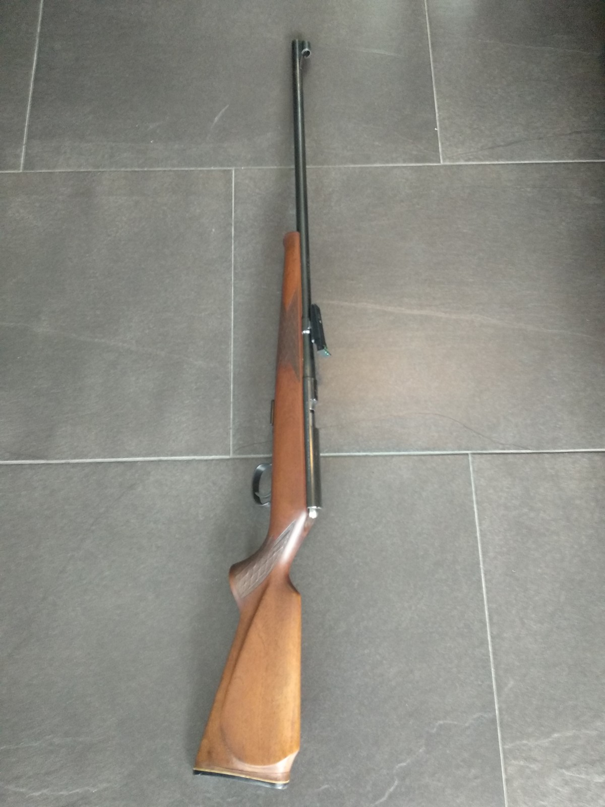 Tiene alza micrométrica, está en Tarragona y se vende por 150€, no incluido envío. Tiene cerrojo y cargador. No hay más que lo que se ve en la foto.
