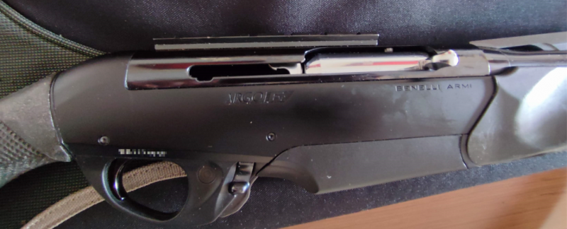 Incluye correa portafusil, funda original Benelli, cargador para dos cartuchos y otro adicional de 4 (no apto para caza).