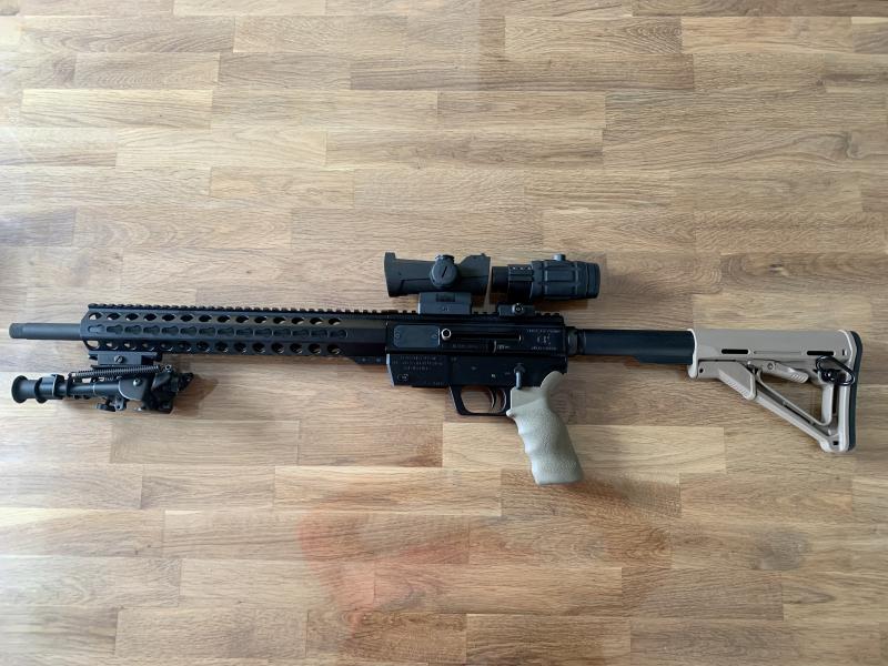 Extras INCLUIDOS EN EL PRECIO: Visor Punto Rojo Bushnell Incinerate 1x25, Magnificador BUSHNELL TRANSITION 3x, muelles del disparador Toni System, 2 culatas en negro y color arena, 2 pistoletes negro y color arena ergonómicos, 2 cargadores uno de la marca Glock capado a 4 cartuchos y otro de la marca Magpul de 17 cartuchos y porta cargador doble.