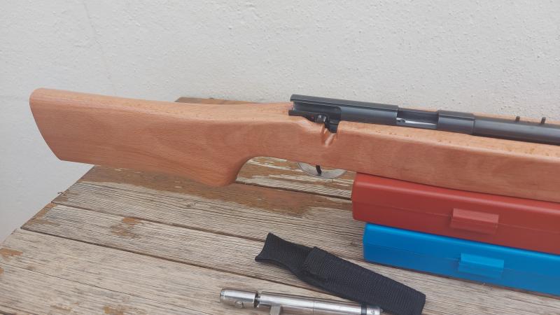 compré hace unos tres años a un compañero del club de tiro y la he utilizado cuatro o cinco veces. La carabina esta en buen estado. Me la vendieron ya con esa culata para tirar en BR-50.