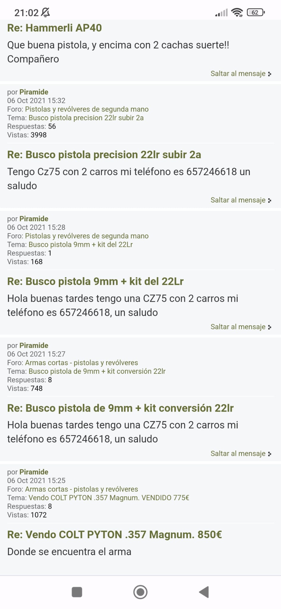 Gracias compañero,por poner mi teléfono, vendí muy rápido la pistola