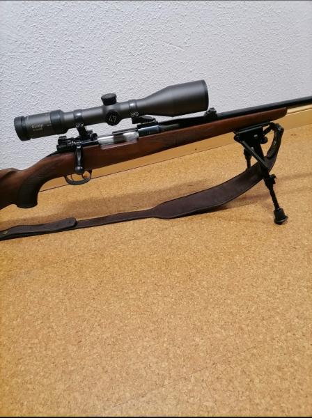 Es un Mauser 98 sporter. Rifle y óptica de calidad a buen precio, años tiene bastantes más de 15.