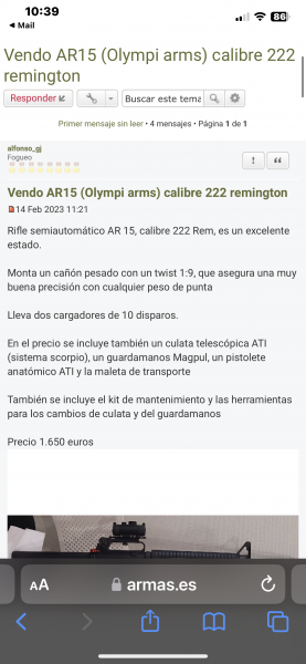 Aquí puedes comprar rifles y vender rifles. Comprar carabinas y vender carabinas. Sólo entre particulares