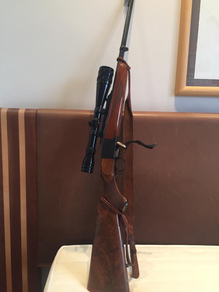Es un rifle que se recamara para 375 y para cartuchos bastante más gordos: 458 Lott.etc nunca lo he entendido. Cartuchos stopper y sólo tienes un tiro