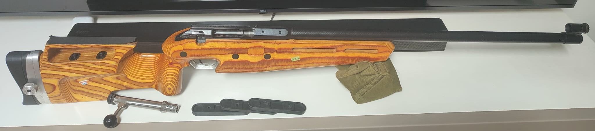 Vendo fusil Izhmash Record-1-308 (calibre .308w). Se incluyen los siguientes accesorios originales: maletín rígido, baqueta de un tramo, correa de tiro, tope de mano, cinta anti-reverberación, diopter con iris regulable, túnel, 3 espaciadores (para la cantonera o la carrillera), y estuche con herramientas. También se entregan una rabera que puede colocarse en lugar de la cantonera original, y un juego de anillas para el túnel delantero. El arma se encuentra en Cádiz y tiene un precio de 550 euros.