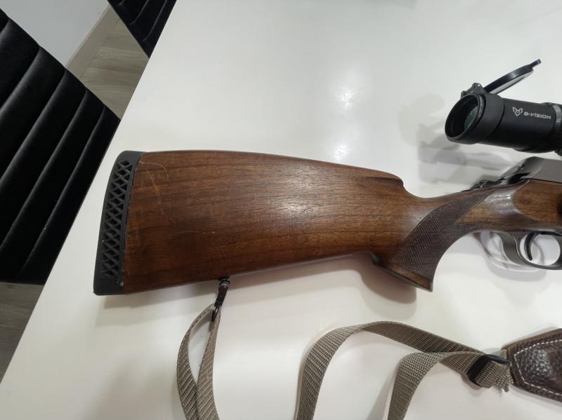 Escríbeme al 646056435 tengo un Merkel kr1 7x64 con cañones adicionales 243 con rosca y cargador y 9,3x62 con cargador