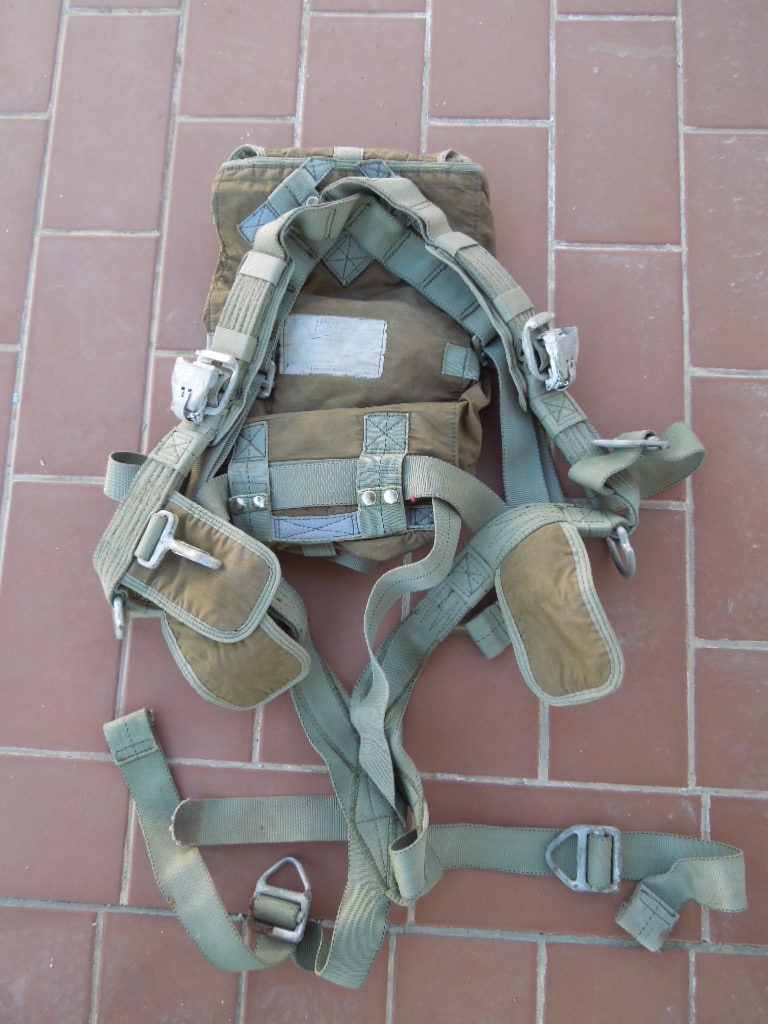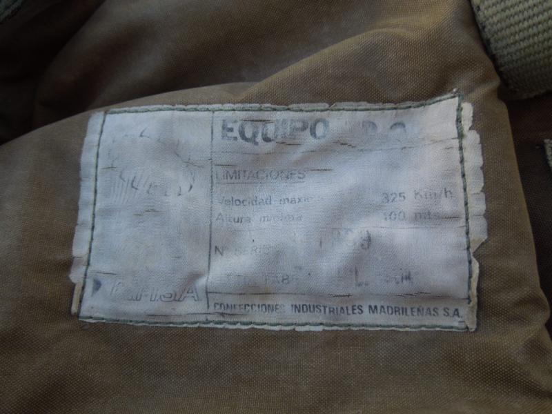 Vendo arnés de paracaídas del Ejercito del Aire. Se trata de un CIMSA (Confecciones Industriales Madrileñas S.A.) de los años 80, al parecer. El modelo no se lee bien, pero creo que es TD 2.