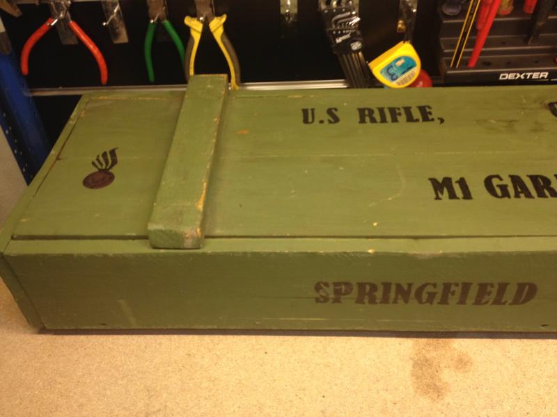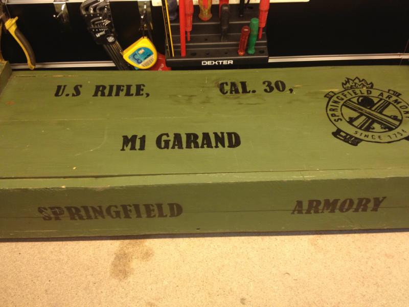 -Caja de madera porta M1 Garand. Con marcajes y serigrafia. Precio: 60,00€