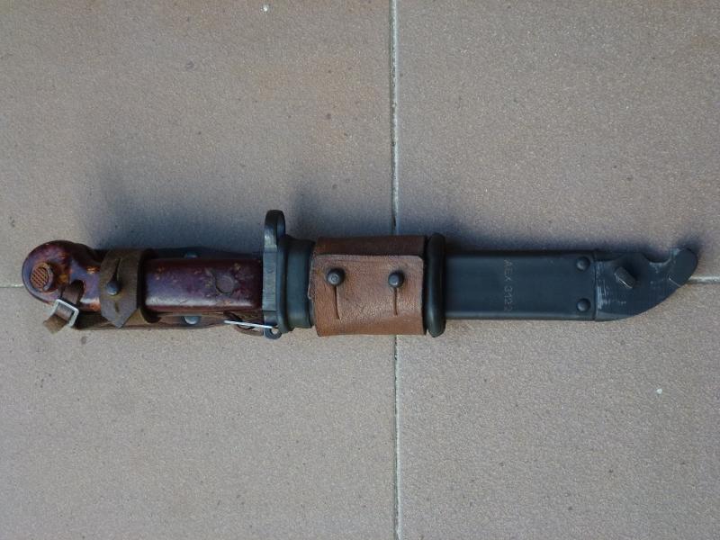 Vendo bayoneta rumana del fusil AKM tipo II traida de Croacia. Estas bayonetas fueron compradas para abastecer a las tropas croatas en su última guerra debido a la falta de todo tipo de armas. La bayoneta esta en buen estado y tiene mismos números en la funda y bayoneta. Tahaliz de cuero, función cortalambres, hoja con filo original de fábrica en en buen estado estado. Con fiador de mano.