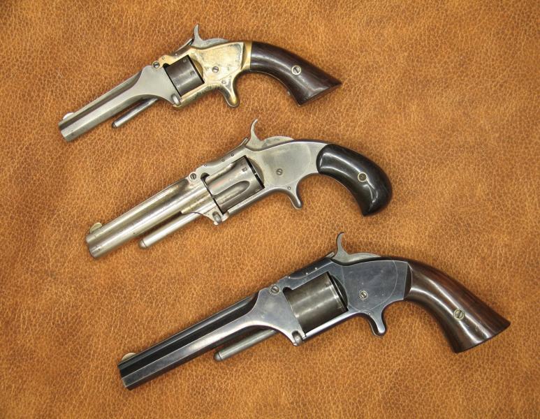Son los Modelos Nº 1, Nº 1 ½ y Nº 2. Todos originales Smith & Wesson y todos de época. Muy buen estado de conservación, mecanizando perfectamente. Fueron los primeros revólveres de retrocarga en América