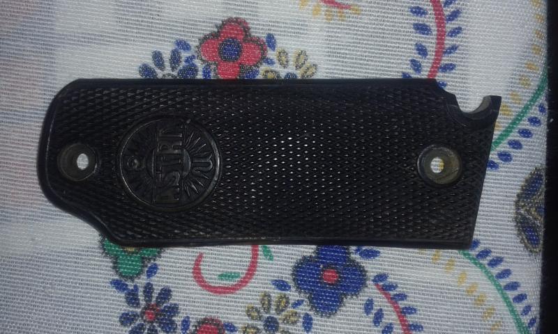 Hola compañeros, he adquirido una preciosa astra 400. Pero me he dado cuenta que una de las cachas fue cambiada en su día y no es la que debería llevar. Siendo esta U arriba y C abajo. Es la cacha de la cara derecha. Si algún forero le ocurre lo mismo o la tiene estaría interesado en cambio o compra e igualmente también busco uno de los tornillos de las cachas ya que uno de ellos no es el original. Adjunto fotos de la cacha que quiero cambiar y de los tornillos. Gracias Esta es la cacha que quiero cambiar