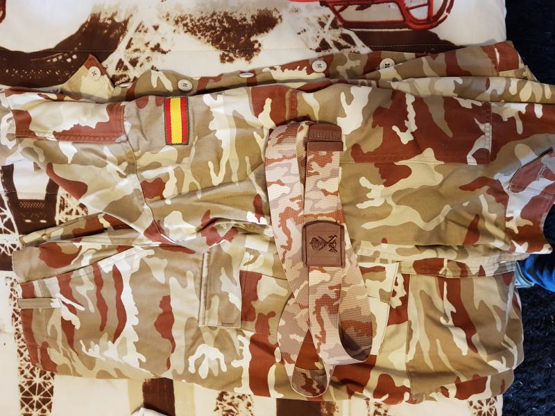 Vendo este uniforme arido de infantería de Marina, compuesto por pantalón, Chispita y cinturón, pido por el 100e con envío incluido.