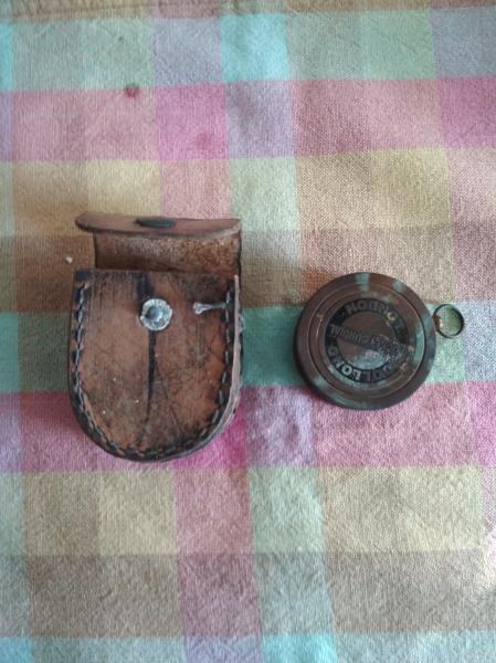 Se vende brujula y reloj de sol, funcionando. Lleva su funda de piel y necesita alguna limpieza. Pido por ella 50 euros.