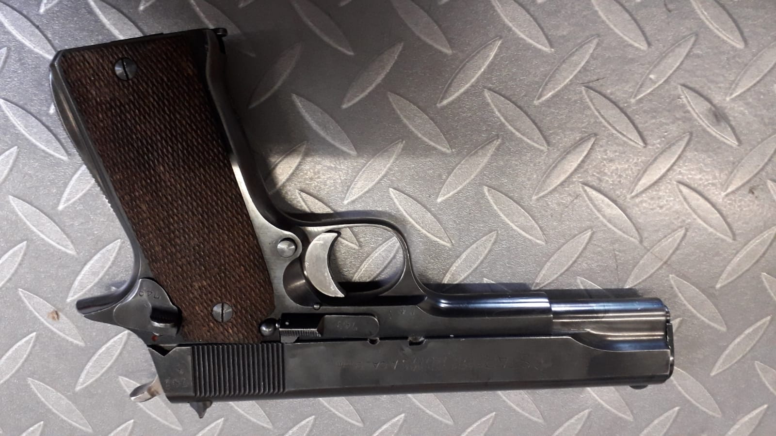 Esta como nuevo, las manchas en la foto no son manchas !!!! Es de tocar el arma.