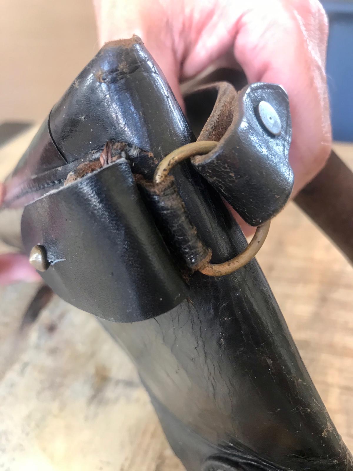 Vendo una funda de bandolera de la Astra 400, con su baqueta. Según el libro de Antaris sería una típica del ejército. Está en perfecto estado, la tapa de donde va alojada la baqueta ha sido restaurada.