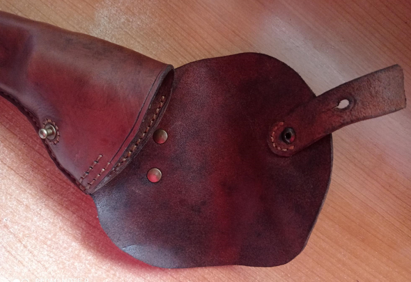 Funda para revolver tipo Remington 1858 ( medidas cogidas de un revolver avancarga uberti 1858 tipo remington) en cuero envejecido y cosida a mano según los parametros usados en la guerra civil americana. 60€ envio por cuenta del comprador o 10€ por mensajeria 24 horas. En las fotos aparece un poco enrojecida, es culpa del tlf. es de color marrón.