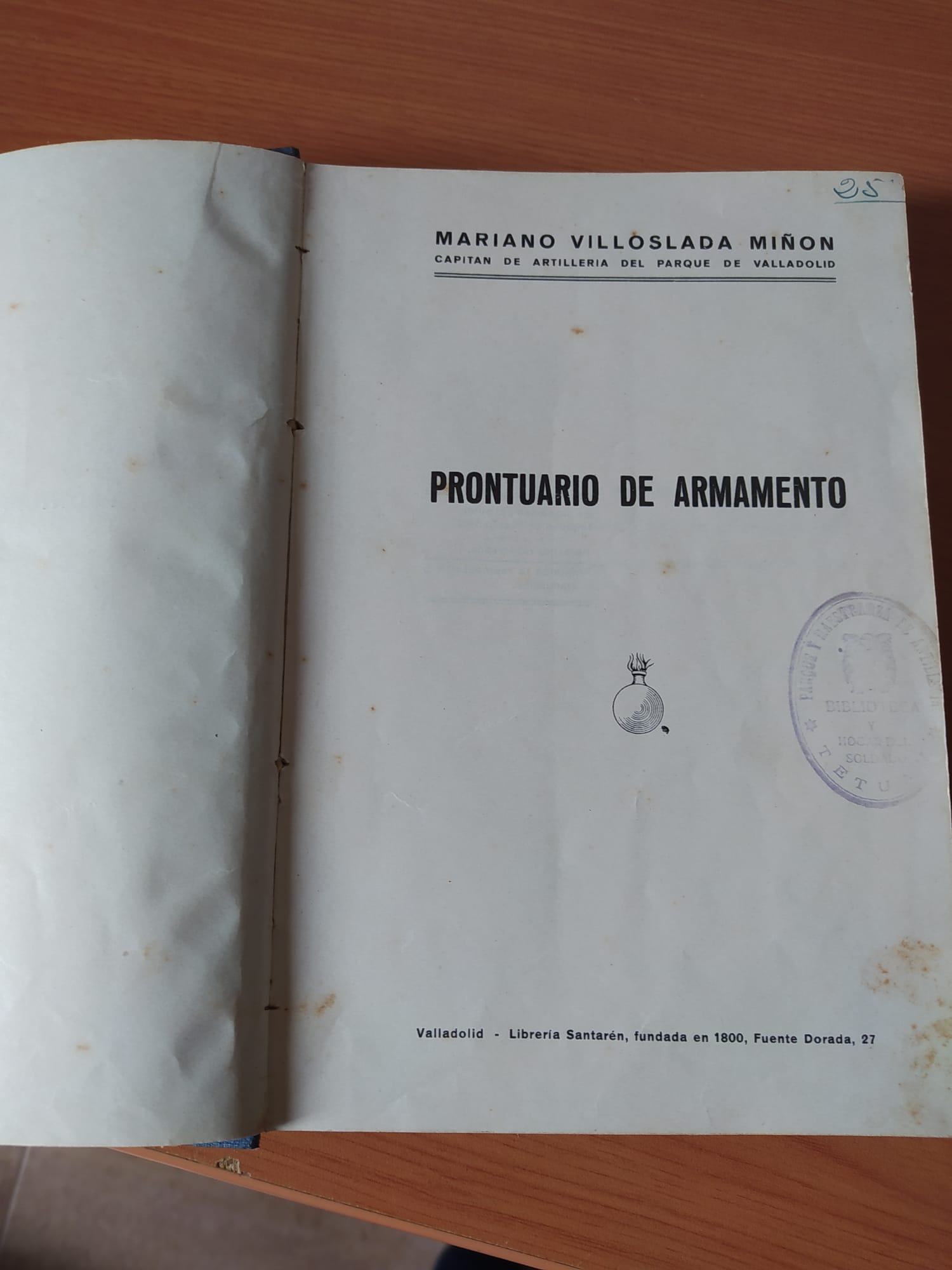 Se vende prontuario de armamento de Mariano Villoslada Miñon Valladolid 1939.