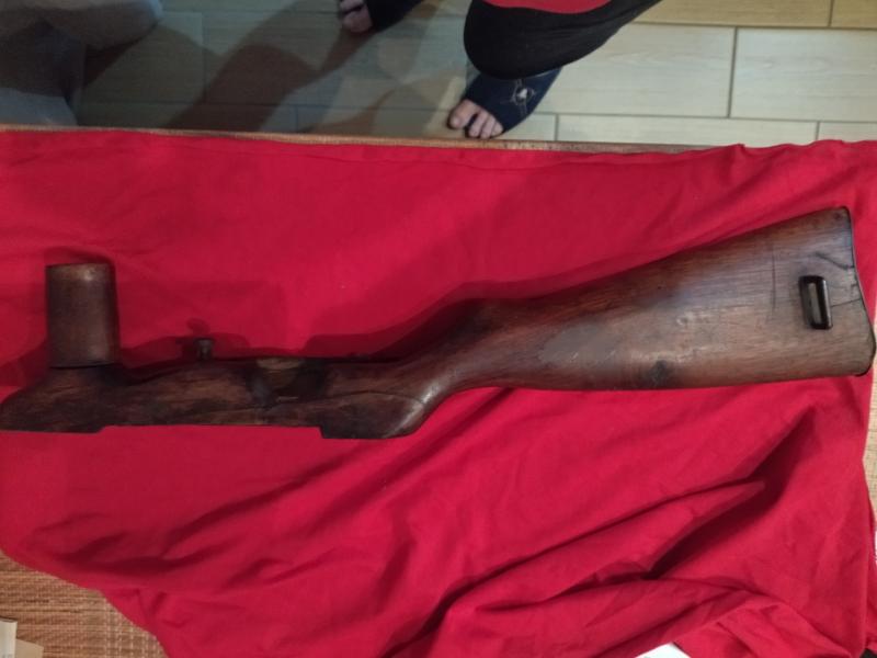 La culata subfusil coruña mod 1944, es original español lo vereis por el pasador o tornillo para el desmontaje, que el alemán no llevaba, parece que tiene una grieta pero no es así es la madera