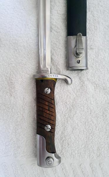 Vendo una rara y escasa bayoneta para Mauser Peruano, una G 98 en excelente estado. El acero sin ningún óxido, y muy bien de maderas. La funda está en muy buen estado, solo una marca en el medio de ella, parece que sa ha doblado, apenas perceptible. Pido 250 euros más portes. Mi nombre es Marcelo y atiendo por WhatsApp en el 618 994 179. Un saludo, y gracias!