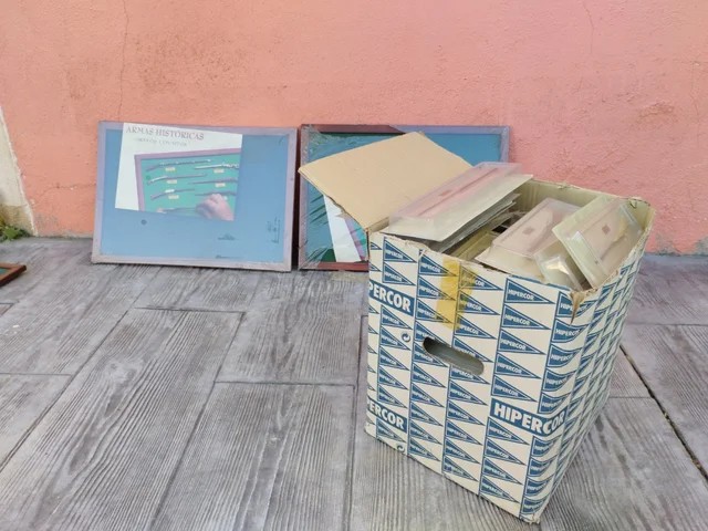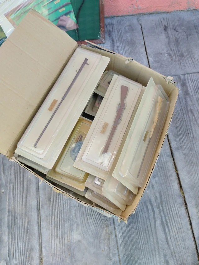 58 armas están en sus cajas, sin abrir, 17 están ya colocadas en 1 cuadro.