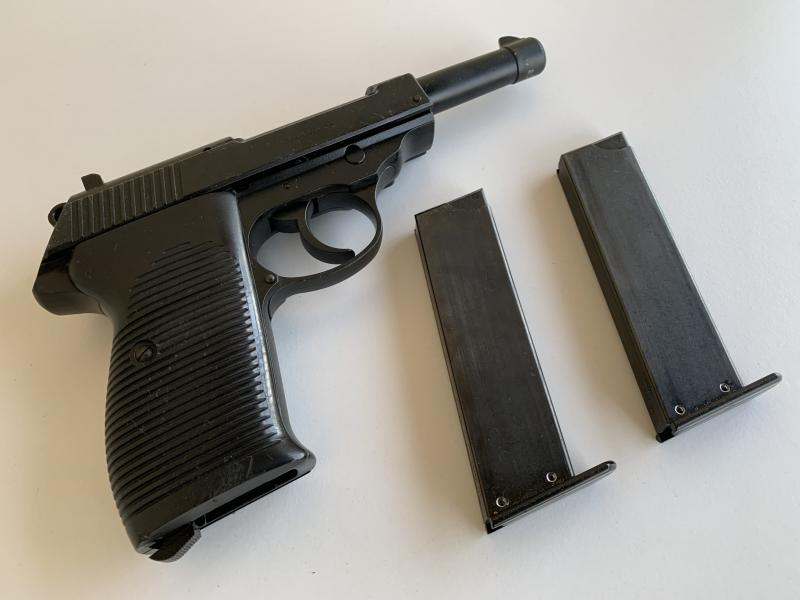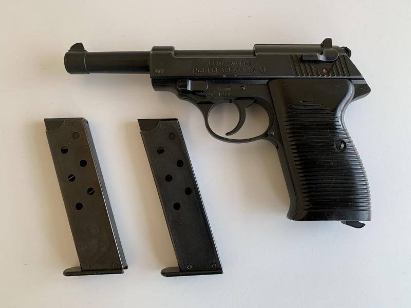 Una histórica para coleccionistas. Me trae buenos recuerdos pues esa similitud con la P-38 me animó a comprar una ERMA EP882S en calibre .22, ésta en concreto tenía el cañón un poco más largo para el tiro deportivo y la alza micrométrica, pero la similitud con la histórica alemana me satisfacía, hasta el punto que finalizada su vida deportiva la inutilicé, inutilización nominal, la antigua, y ahí sigue de "recuerdo", y por desgracia acabará en la chatarra en la IA dadas las actuales exigencias que hay con las armas inutilizadas. Suerte en la venta.