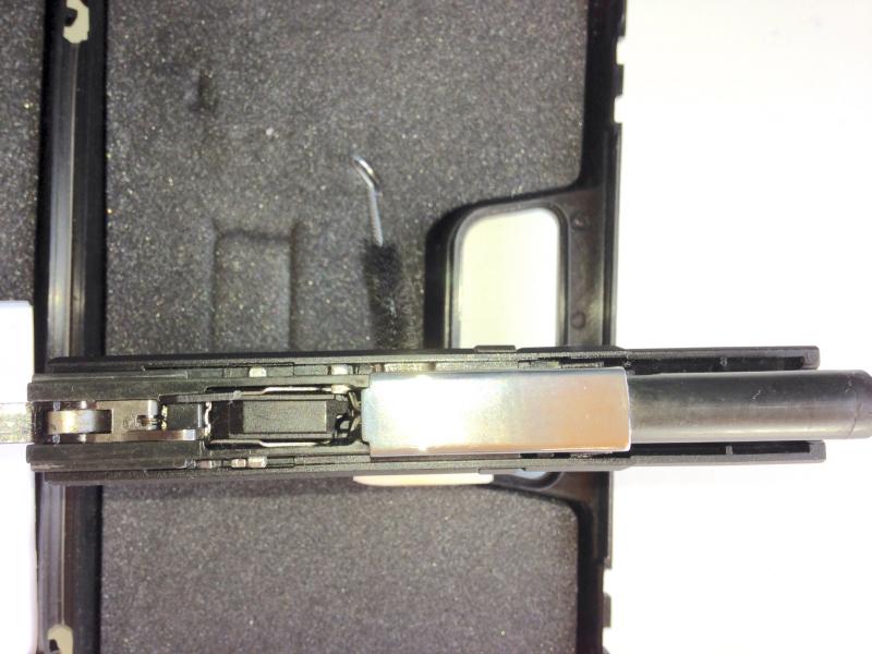 Os recomiendo que veáis este video. La verdad es que me hace arrepentir venderla. En el se ven las dos armas , la real y la de fogueo. Las compara y se ve que la de fogueo ES IDÉNTICA, SALVO la recamara. Por eso la pulí. La única diferencia ahora es que en la de fogueo la recamara esta ligeramente mas baja en la corredera ( normal porque el cañon no va suelto dentro....!)