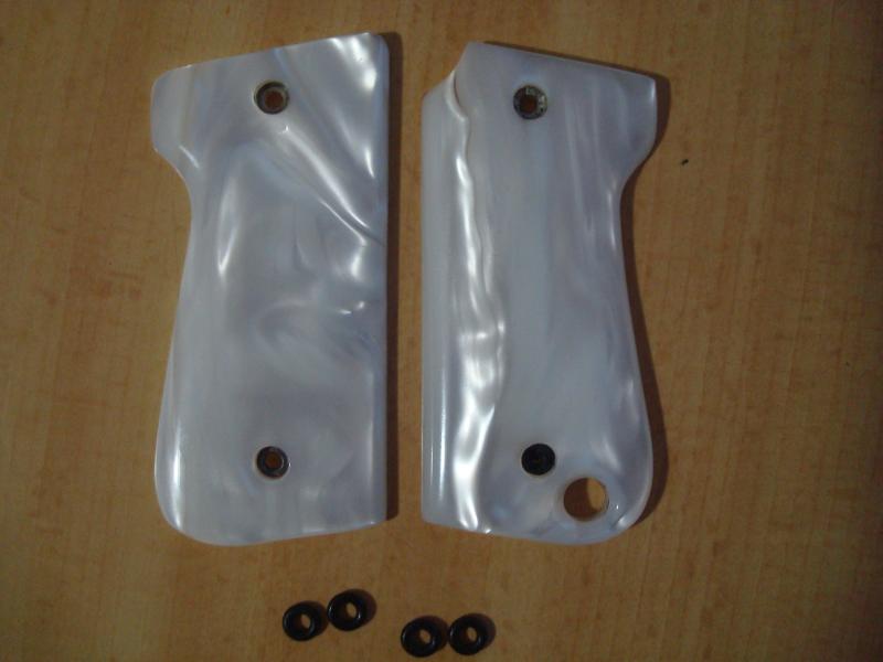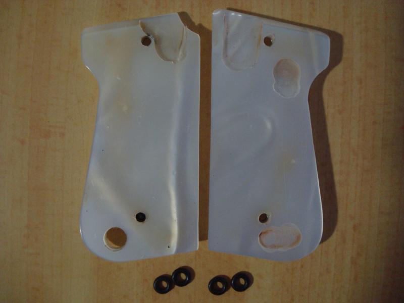 Hola Hojarasca, si las cachas no tienen ni la más mínima fisura (algo corriente en este tipo de material), me las quedo. Para que son las arandelas que aparecen en las fotos?.