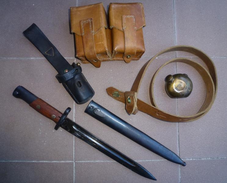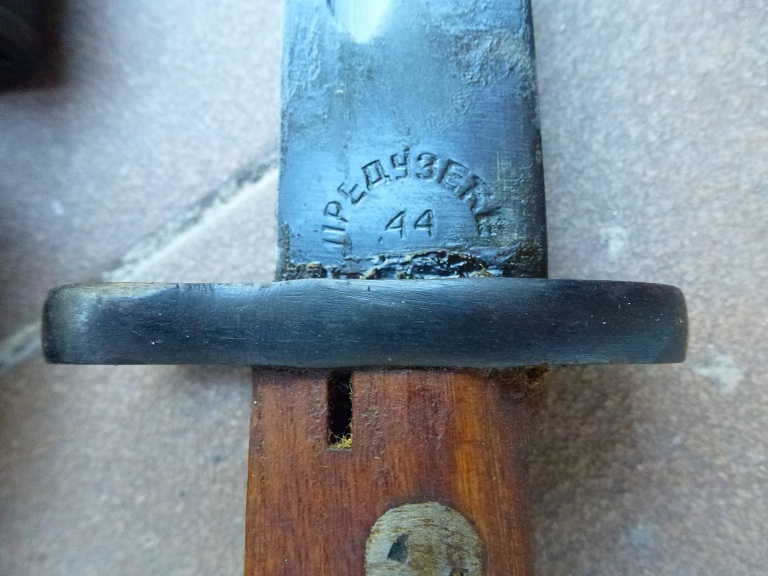 La bayoneta con su tahaliz de cuero esta en muy buenas condiciones,la hoja esta "perfecta" y está marcada en caracteres cirílicos ЛРЕДУЗЕЋЕ 44 (PREDUZECE 44 que significa FABRICA 44).La bayoneta no está numerada ni en la funda metálica ni en la cruceta, lo que es muy posible que fuera de exportación o ni siquiera llegó a salir de fábrica. Las cachas de madera estan nuevas. Pavón original al 99%. La fabricación de estas bayonetas comenzó a principios de la década de los 50 como accesorio de los mauser yugoslavos M-48 y variantes, aunque por su diseño también puede ser encastrado en los K98, m24/47...