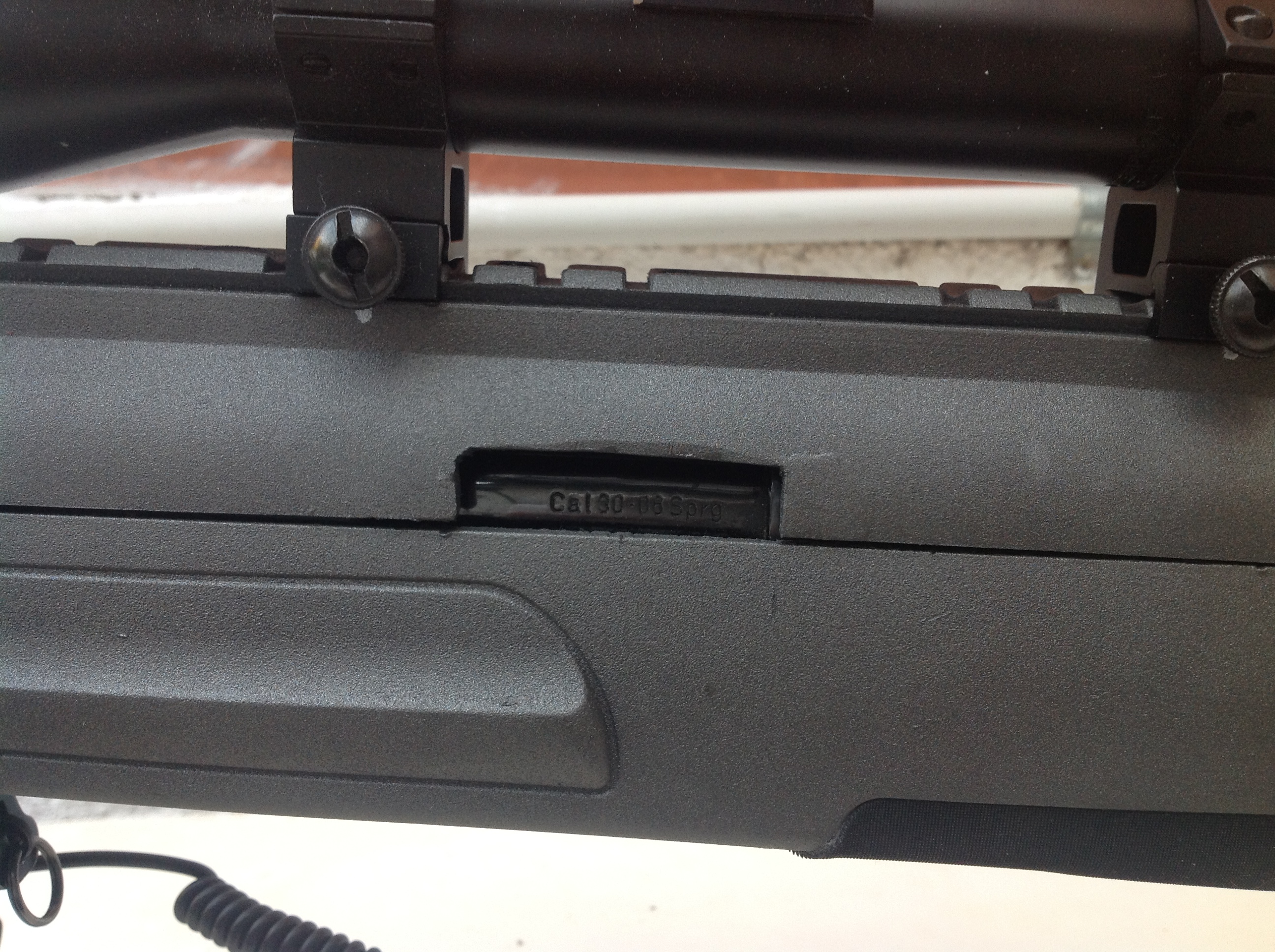 Colimador copia cartucho 30-06 para regular visor. EL arma esta quiada en D