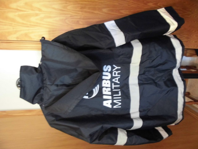 -Chaquetón de Airbus Military, es ligero y cómodo, la talla es una XL/XXL de torso, las mangas no son demasiado largas, está usado pero en muy buen estado, tiene bandas reflectantes y el logo de la empresa bordado en el pecho, tiene el nombre del técnico escrito a boli, se ha lavado y guardado y el estado es prácticamente como nuevo 50€.