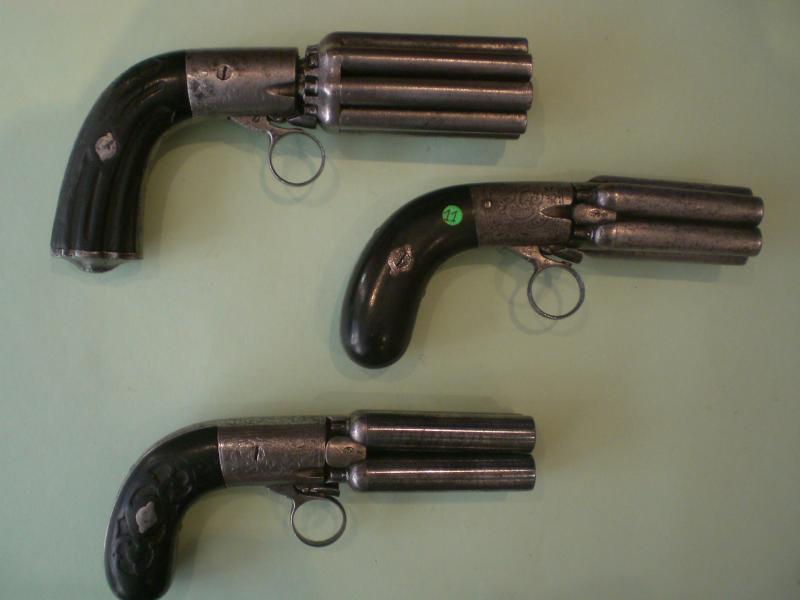Vendo tres pepperbox del fabricante Mariette Brevete, inscritos en el libro de coleccionista. Uno de calibre 8 mm, otro de 12 mm y otro de 9 mm (4, 5 y 8 cañones).
