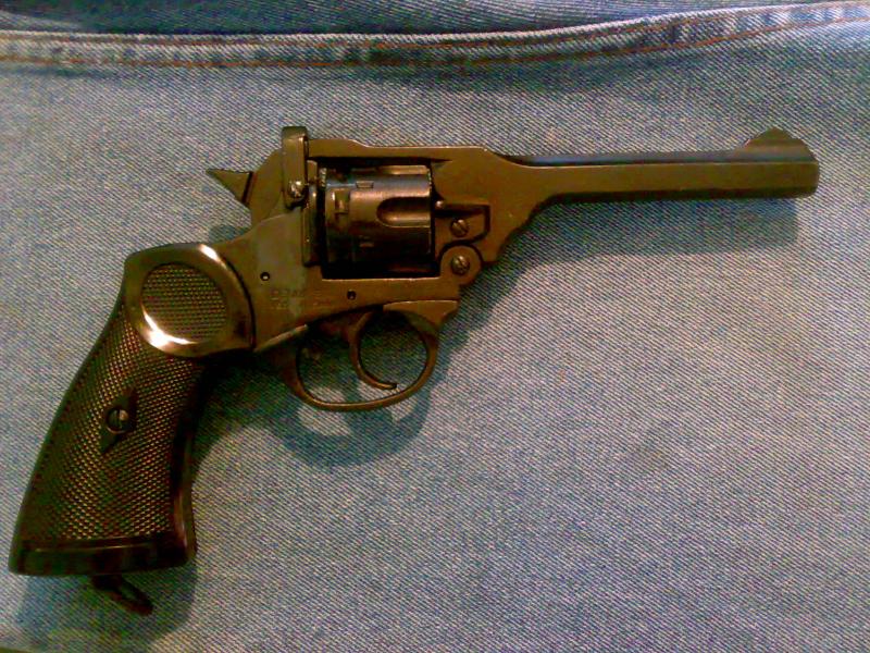 Por si interesa a alguien también podría cambiar por una réplica inerte de DENIX, el revólver Webley Mark IV. Estas réplicas son para colección/decoración y reenactment. No són de fogueo.
