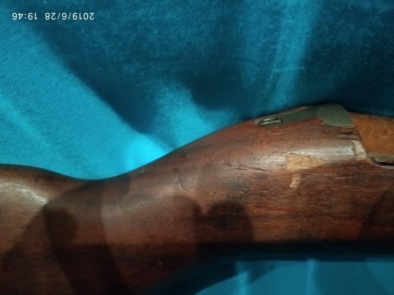 - 1) Madera con sellos arsenal ROCKOLA e inspector de armamento y cubrecañón. Con los herrajes de las fotos e incluyo porta-bayonetas época posterior. aparentemente nueva, con alguna rozadura de almacenamiento (ver foto) 180 euros + portes. Preferible entrega en mano (Madrid).