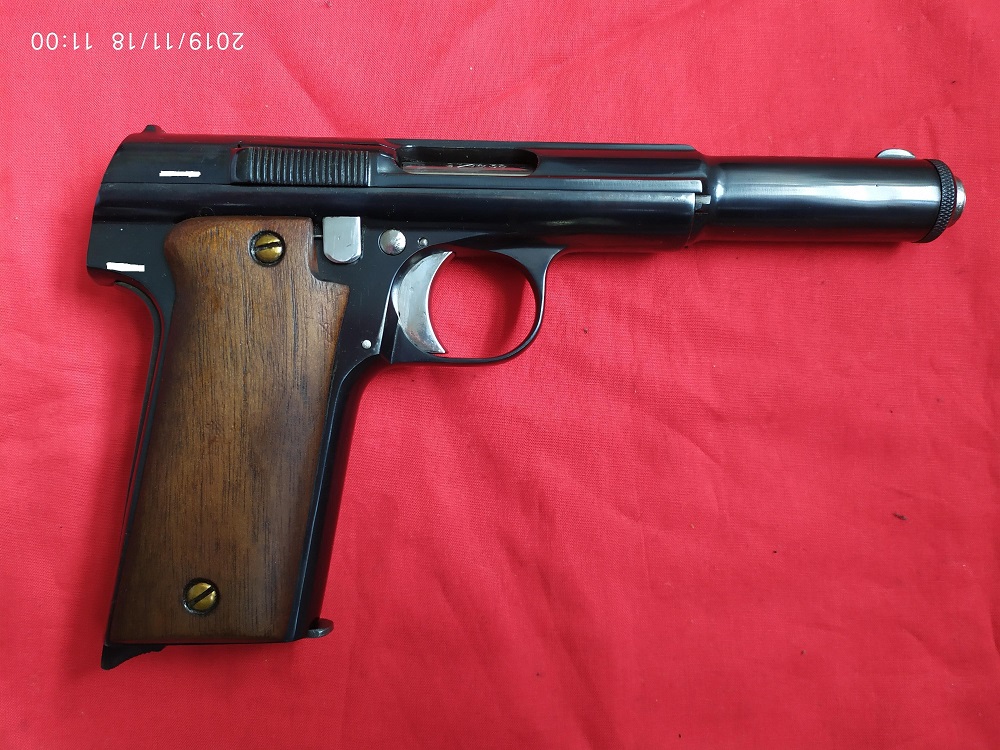 La pistola cuando la compré tenia el pavón muy feo, me la restauraron en una armería de Eibar.