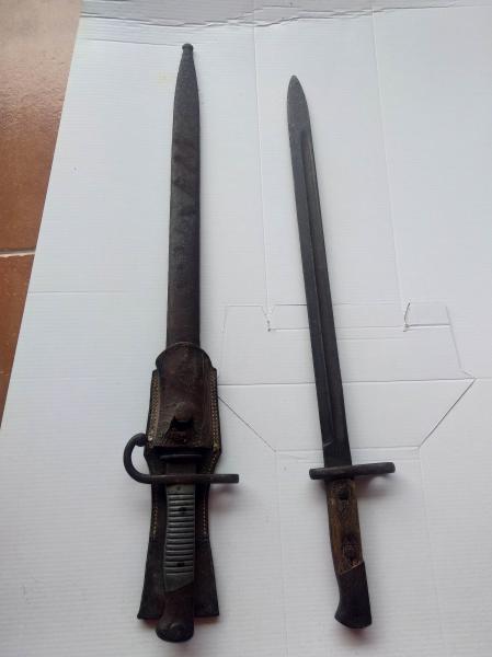 La otra, podría ser la bayoneta española modelo 1913, pero su deterioro me hace no estar seguro.