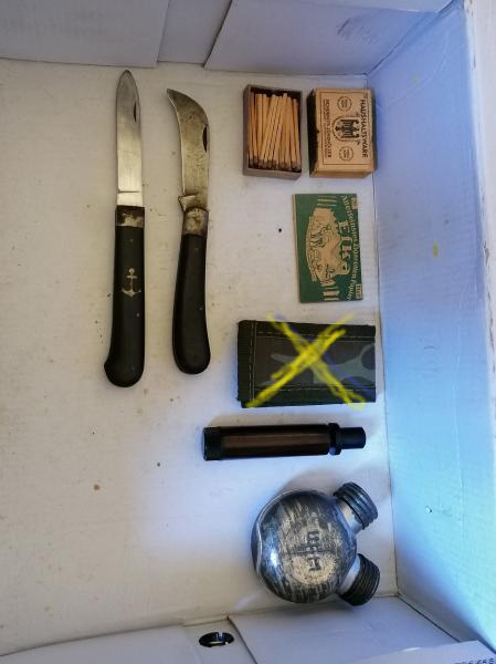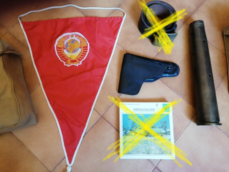 navaja con ancla 10€,navaja de podar 50€,banderin sovietico 20€,